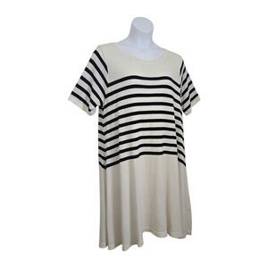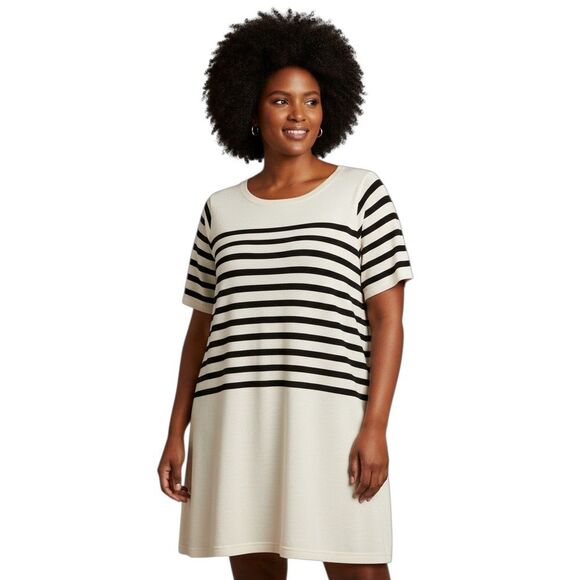 ASOS Curve 22 3X Off-White Black Stripe Trapeze Midi Dress Stretch Short Sleeve