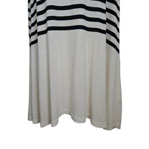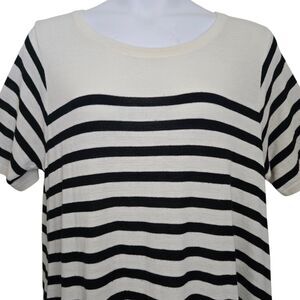 Flowy and lightweight ASOS Curve trapeze midi dress in a classic off-white and black stripe. Features stretchy acrylic knit, short sleeves, and a relaxed swing silhouette that drapes beautifully. Perfect for casual days, weekend errands, or easy fall transition outfits.