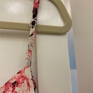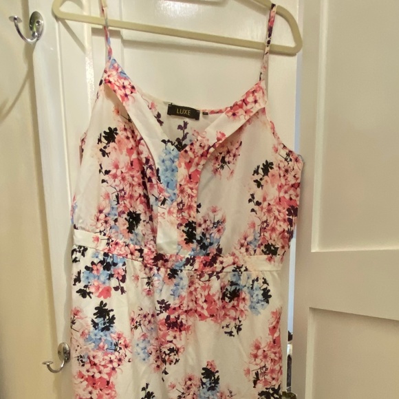 Beautiful floral print. Elastic waist at back. Adjustable straps. Full length.