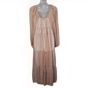 ASOS Curve Maxi Dress Lurex Chiffon Ditsy Floral Cottage Boho Fairy Gold Size 4