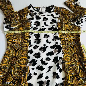 It's in good condition and ready for a new home. The multicolor print is eye-catching and the three-quarter sleeves make it versatile for different seasons.