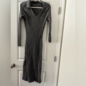 I Saw It First (by way of ASOS Curve) gray midi dress. Size US 20. Maintains a form-fitting, bodycon fit while also being super comfortable/breathable. Depending on preference, can easily fit up to a 22.
