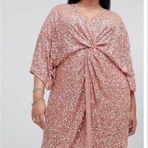 ASOS Curve Sequin Midi Dress in Rose Gold