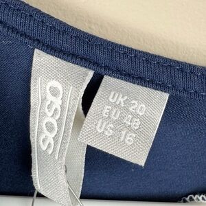 ASOS Curve White, Blue & Gray Colorblock Tie Waist Dress Size 16