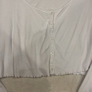 Stylish white button-up top or cropped cardigan. Long sleeves with a scoop neck