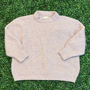 Oversized crew neck sweater with curved hem in purple. Stay warm and stylish with this cozy mauve sweater. Perfect for any occasion.