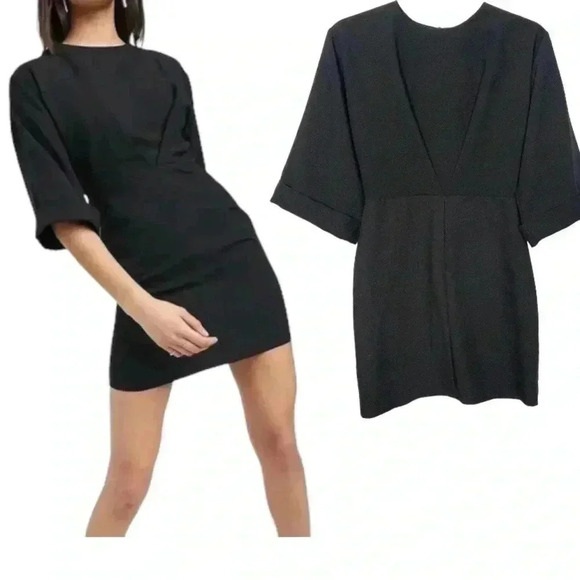 ASOS DESIGN Black Kimono Wide Sleeve Fitted Mini Dress