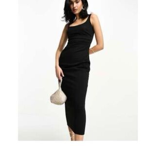 ASOS DESIGN Black Square Neck Midi Dress - Size US 12
