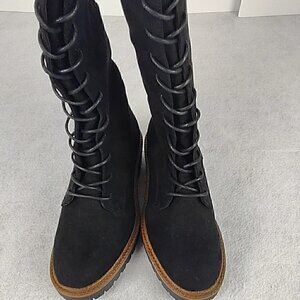 ASOS DESIGN Carolina Chunky Faux-Suede Uppers, Lace Up Knee High Boots In Black Size 4 (NWOT)