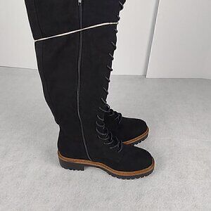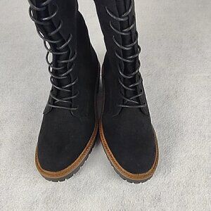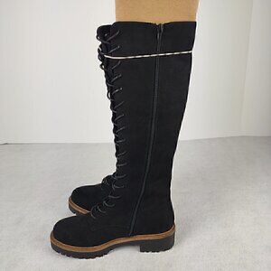 ASOS DESIGN Carolina Chunky Faux-Suede Uppers, Lace Up Knee High Boots In Black Size 5 (NWOT)