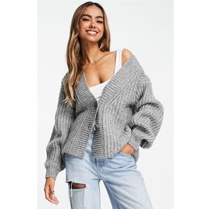ASOS DESIGN Chunky Rib Stitch Cardigan Gray Size 10 NEW