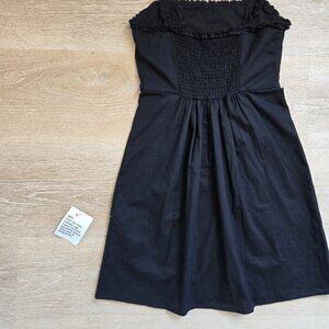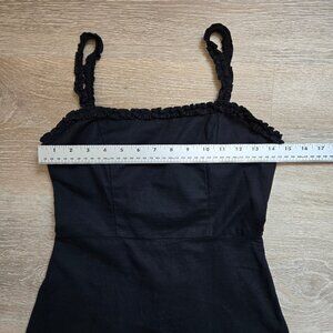 ASOS DESIGN Cotton Linen Mix Ruffle Trim Mini Sundress Black Size 2 New With Tag