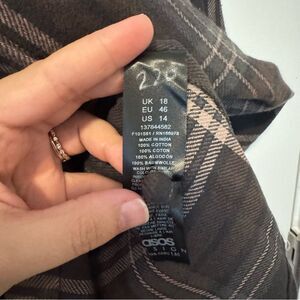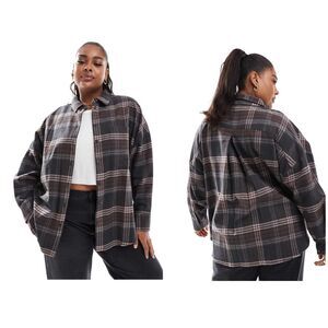 ASOS DESIGN Curve Oversized Flannel Shirt Brown Plaid / NEW / Size 14