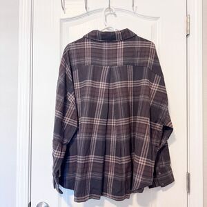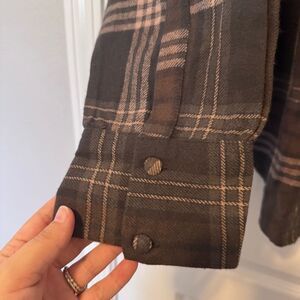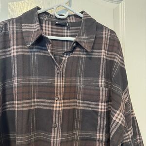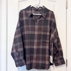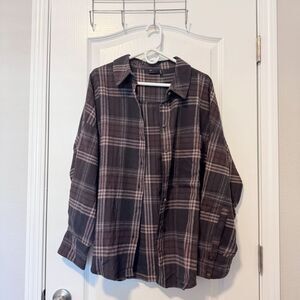 Brown plaid - oversized fit - button front - slightly thicker material like a Shacket style - 100% cotton
