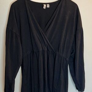 ASOS DESIGN Curve Wrap front long sleeve smock dress in black‎ - size 2