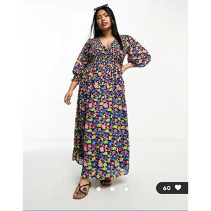 ASOS DESIGN Curve midi smock dress with shirred cuffs multi floral print Size 18