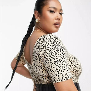 ASOS DESIGN Curve skinny fit t-shirt bodysuit in mini leopard print US 22