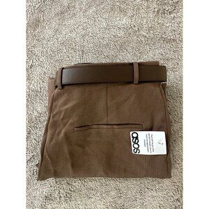 ASOS DESIGN Curve tailored ankle grazer pants with PU belt in mocha Size 16 New