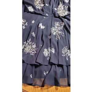 ASOS DESIGN embellished tiered mini dress with blouson sleeve Size 8 Whimsigoth Boho Fairy. Lined, polyester. 1 button on upper back is missing (1 is there).