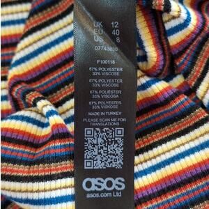 This dress from ASOS DESIGN is in excellent preowned condition - no flaws. Multicolored Striped Henley Mini Dress. Y2K Style. Lightweight. Polyester and Viscose. Ribbed. Size 8.