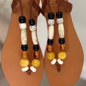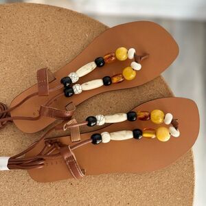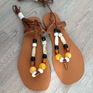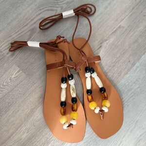 ASOS DESIGN Five Islands leather beaded sandals with ankle ties in tan New Genuine leather upper