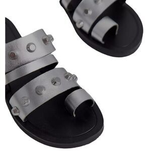 ASOS DESIGN Freewheel premium leather studded toe loop sandals in silver | 6 | EUC | MSRP $65