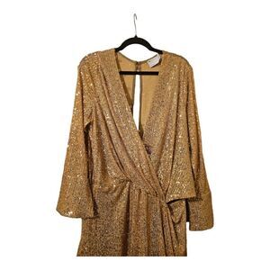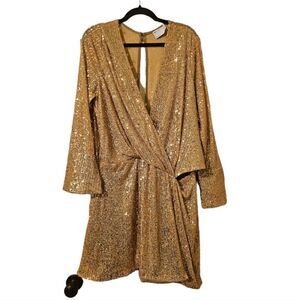 ASOS DESIGN Gold Sequin Plunge Mini Dress - Size 14