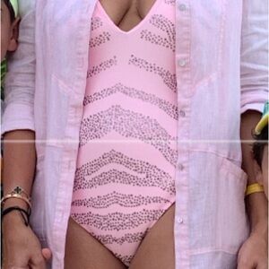 ASOS DESIGN Jeweled deep plunge swimsuit in Pink Size 6