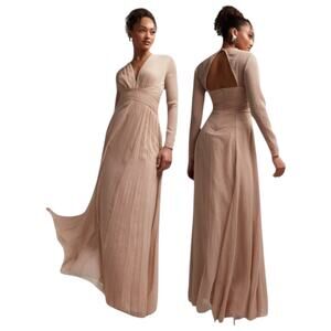 ASOS DESIGN Love At First Scroll V-Neck Long sleeve Open Back Gown Light Pink 10