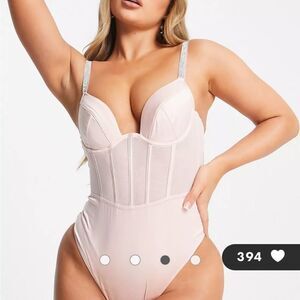 ASOS DESIGN Margo padded underwire bodysuit with diamante straps pink 10CD nwt
