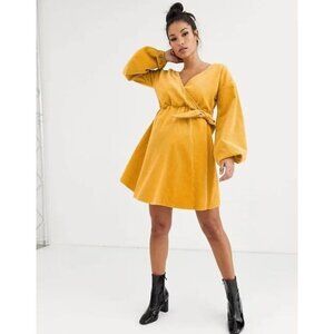 ASOS DESIGN Maternity cord wrap smock mini dress in marigold