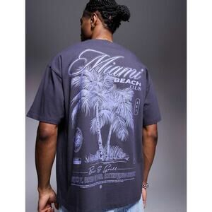 ASOS DESIGN Miami Beach Club Oversized Palm Tree Graphic Tee Streetwear Vibe~NEW