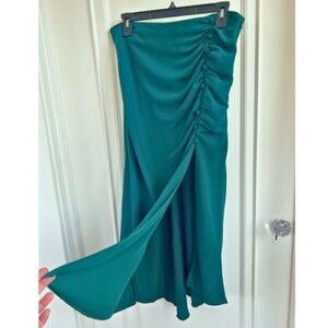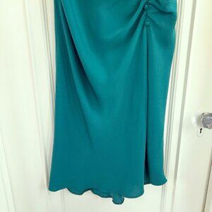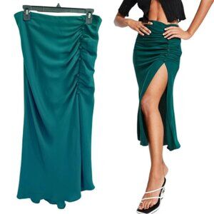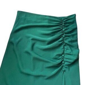 ASOS DESIGN Midi Skirt with Ruched Side and Button Detail Dark Green Size 10