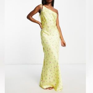 ASOS DESIGN One Shoulder Satin Slip Maxi Dress in Ditsy Floral