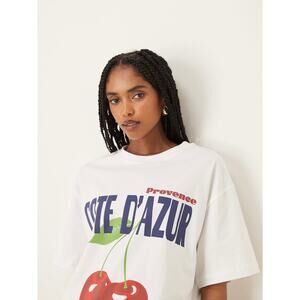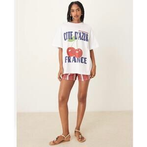 ASOS DESIGN Oversized France Cherry Graphic T-Shirt White Cotton Tee NEW