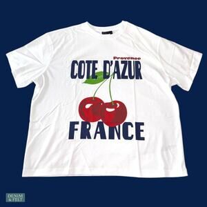 Color: White with Red Cherry & Blue “Côte d’Azur France” Print