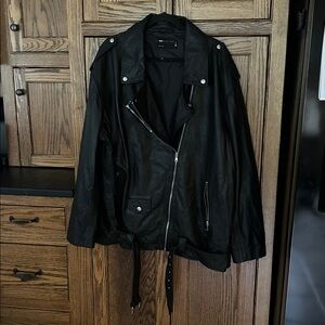 ASOS DESIGN Oversized Premium Real Washed Genuine Leather Biker Moto Jacket 16T