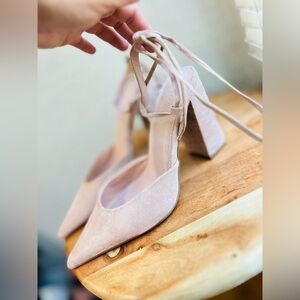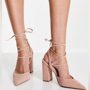 ASOS DESIGN Panda tie leg block heel shoes in taupe size 8US