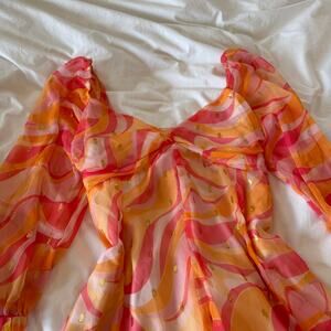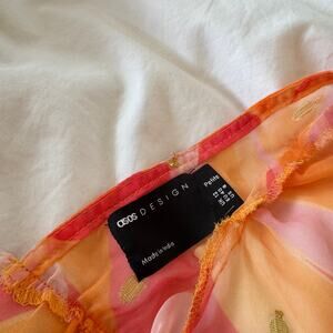 ASOS DESIGN Petite Metallic Flare Mini Dress Swirly Print Strappy Back Size 8