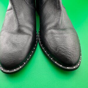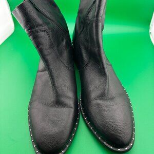 ASOS DESIGN RESTORED STUDDED BLOCK HEEL, BLACK LEATHER ANKLE BOOTS, SIZE 10