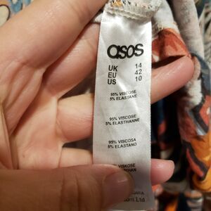 ASOS DESIGN Red Mini Dress Mixed Floral Print Lace Blouson Sleeve Womens Size 14