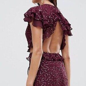 NWT!!! ASOS DESIGN Ruffle Maxi Dress With Open Back in All Over Sequin Size 14