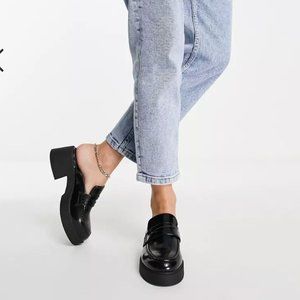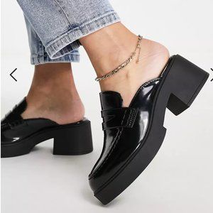 ASOS DESIGN Sina Chunky Heeled Loafer Mules in Black UK Size 4/ US Size 6.5