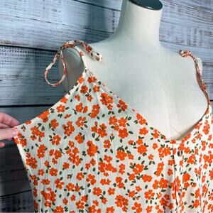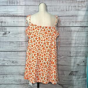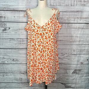 ASOS DESIGN Size 20 Button Front Tie Shoulder Mini Sundress Orange Ditsy Floral