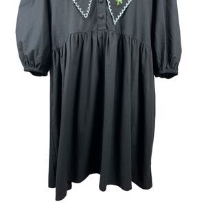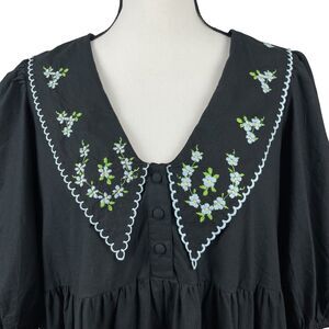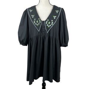 ASOS DESIGN Smock Dress Size 4 Black Puff Sleeve Embroidered Oversized Collar