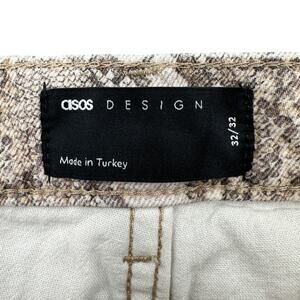 ASOS DESIGN Snake Print Five Pocket Button Closure Bootcut Leg Pants 32