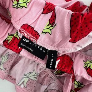 ASOS DESIGN Strawberry Print Ruffle Shorts Pink Size US 4