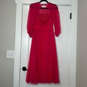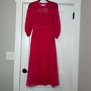 ASOS DESIGN Textured Pleated Shirred Midi Dress Hot Pink in size 0. Excellent preowned condition