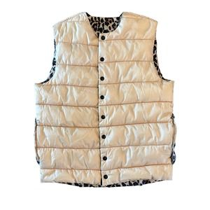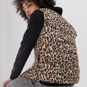ASOS DESIGN Unisex Reversible Puffer Vest Leopard Print and Tan - Size Small