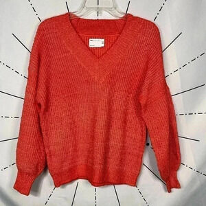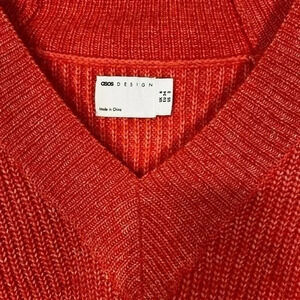 ASOS DESIGN V Neck Puff Balloon Sleeve Boho Fluffy Sweater